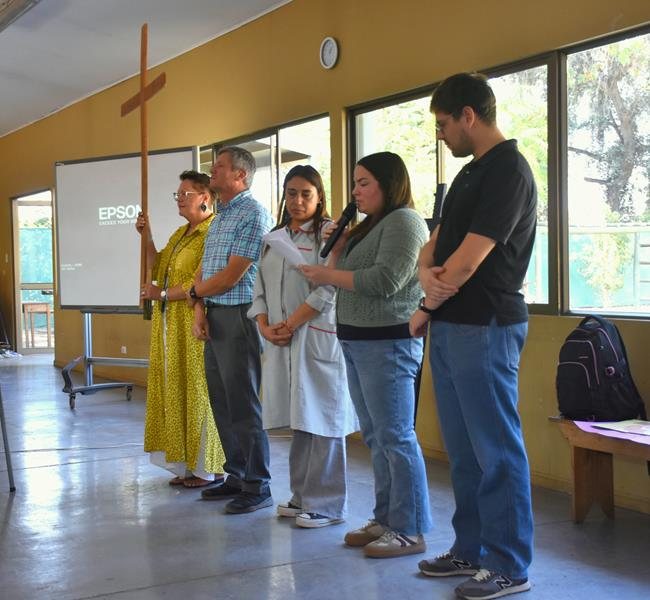 Iniciamos este camino con la representación de la Cena del Pan y el Vino, instancia que nos invita a comprender el valor de compartir y servir a los demás. Luego, participamos del Vía Crucis, un espacio de recogimiento que nos permite acompañar espiritualmente el camino de Jesús hacia la cruz.